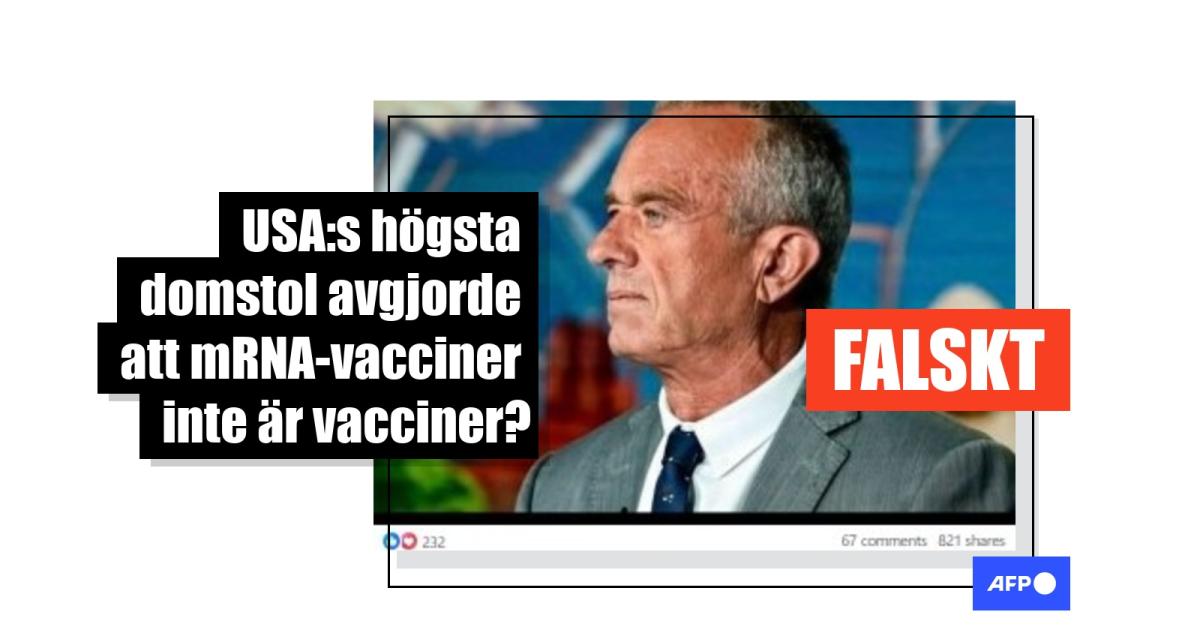 "Vacker och betydelsefull dom av USA:s högsta domstol: Covidvaccin är INTE vaccin. Robert F. Kennedy Jr. vann sin stämning mot alla läkemedelslobbyister." Så börjar ett svenskt Facebook-inlägg som publicerades den 4 maj och som har delats hundratals gånger. Det påstås också att högsta domstolen "bekräftar i sin dom att skadorna som orsakats av Covid mRNA-genterapier är tydliga".