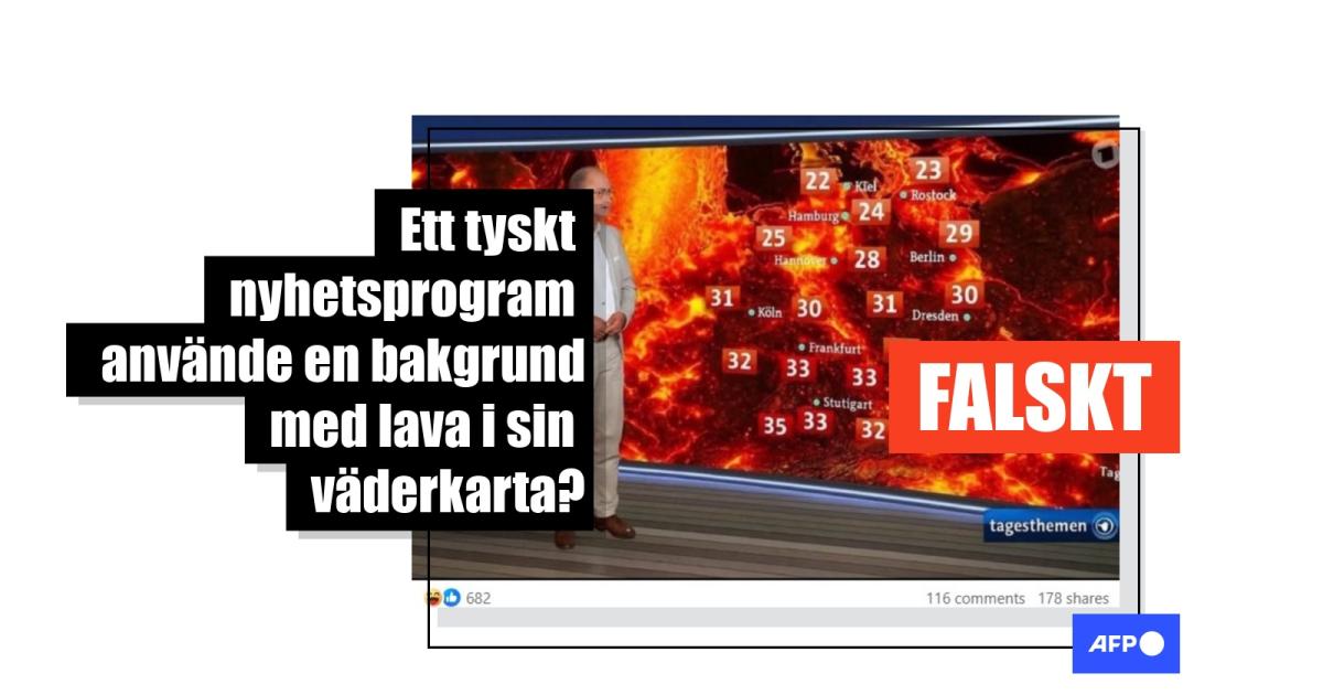 Två "exceptionella" värmeböljor har inträffat i Europa hittills detta år, enligt EU:s klimattjänst Copernicus, och klimatforskare säger att juni 2025 var den tredje varmaste junimånaden som någonsin uppmätts globalt. Klimatförnekare försöker ofta ifrågasätta data och hävda att den globala uppvärmningen inte händer eller att den som mest överdrivs för att skrämma folk. I slutet av juni och början av juli 2025 delades en manipulerad väderkarta i sociala medier på olika språk. Den påstods ha visats på tysk TV och visa normala sommartemperaturer med en lava-bakgrund. Det påstas att tv-kanalen ska ha använt alarmistiska bilder avsiktligt för att överdriva klimatförändringarnas effekter. X-kontot bakom bilden har bekräftat att bilden var manipulerad. Den tyska kanalen och meteorologen på bilden berättade för AFP att en sådan bakgrund aldrig använts i deras dagliga väderleksrapporter.