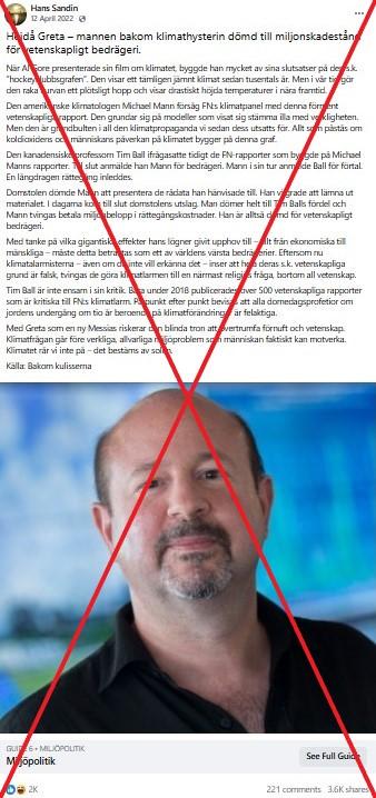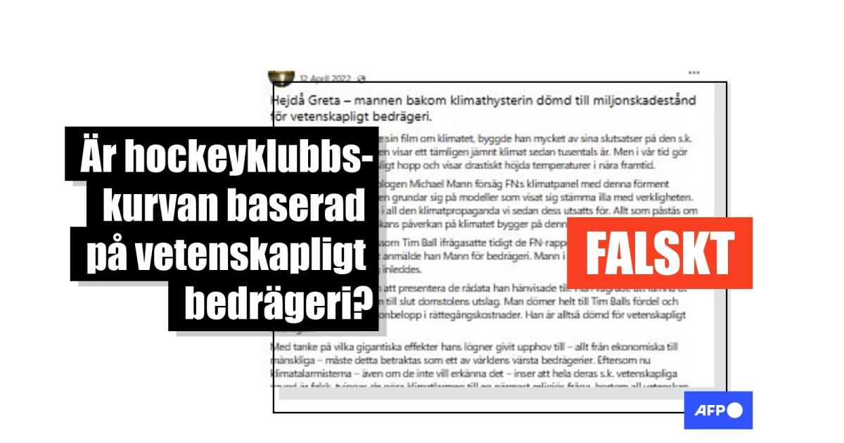 "Hejdå Greta – mannen bakom klimathysterin dömd till miljonskadestånd för vetenskapligt bedrägeri", står det i ett viralt svenskt Facebook-inlägg. Inlägget publicerades ursprungligen den 12e april 2022 men det började delas igen på hösten 2025. När granskningen publicerades hade det fått sammanlagt över 3 700 delningar. Samma text kopierades även i andra inlägg.